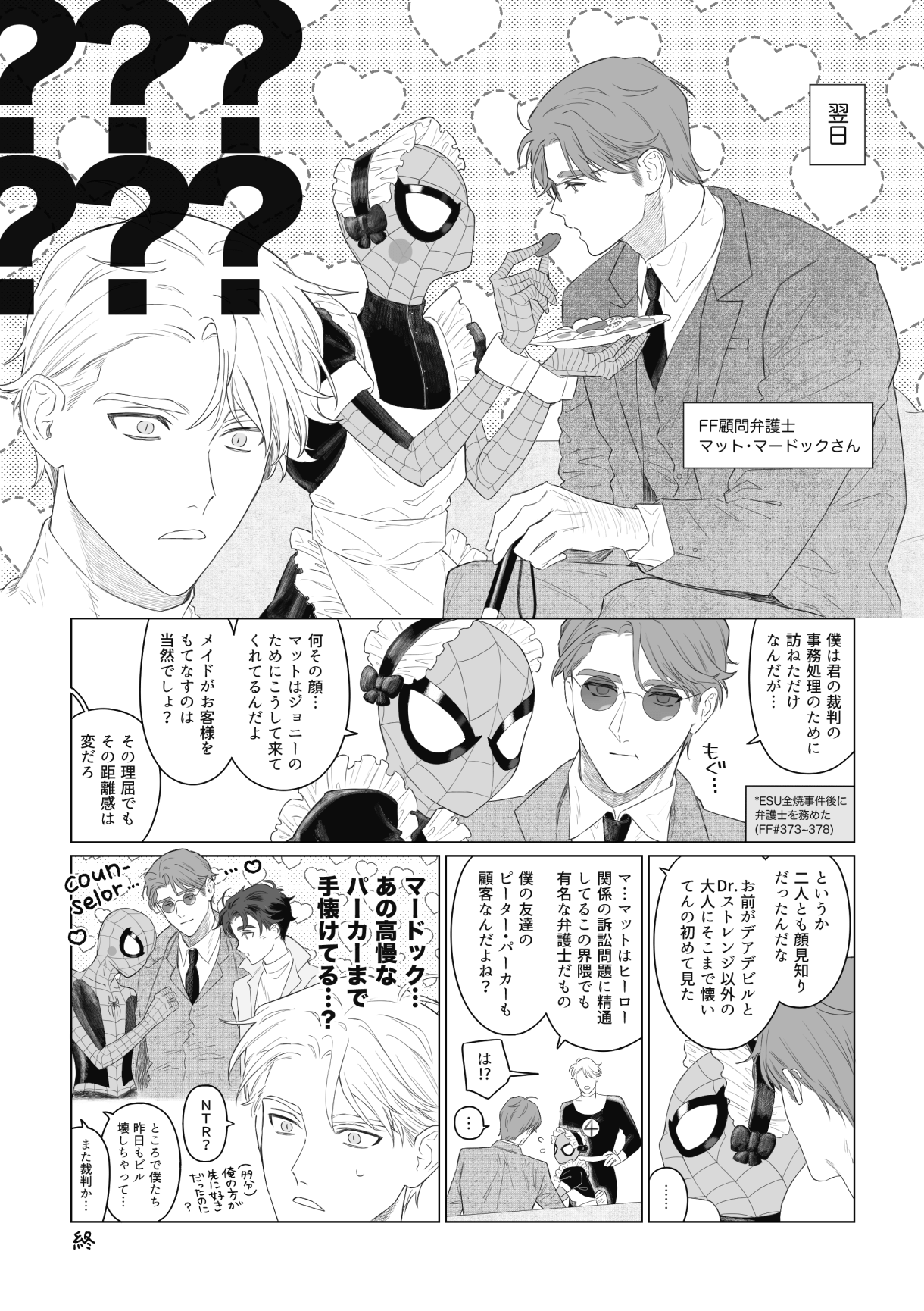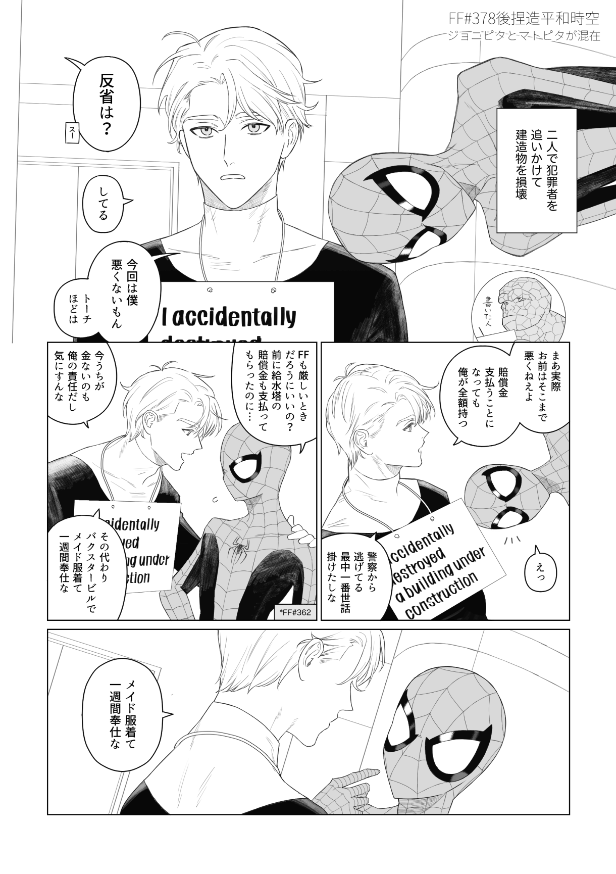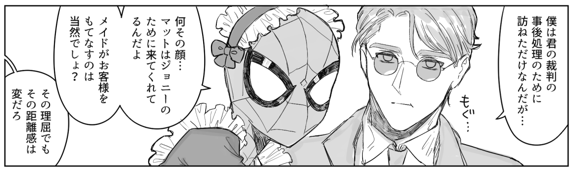 ジョニーくんESU全焼事件裁判後のネタを描きたいと思いその時期のジョニーくん、マットさん、🕷くん出演コミックを色々と読んだもののどうあがいても時系列の整合性が取れなかったので平和時空を捏造しています